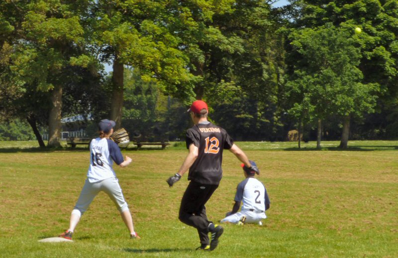 David Morris drew a leadoff walk to get under way and was soon brought in for the only run of the first inning by third baseman Dave Piesse. Morris was then called on to snag a deep flyball in centre left to keep the Vikings level as Sarah d'Agar snapped up a grounder to snuff out the second. Try as they might, the Falcons couldn't punch the ball past the infield; Hettie McNeil and Jana Langley both struck howitzer line drives but somehow the Vikings continued to fish them out of the air to keep the score tight going into the fourth inning.